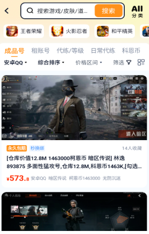 5、玩家可以直接输入关键字,找到所需要的游戏,皮肤,道具以及装备