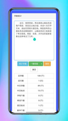 5、字数统计功能可以输入文字并统计字数、行数、标点等。