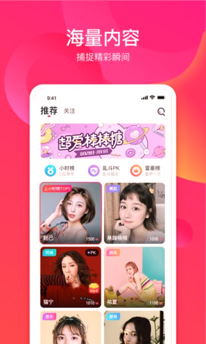 皮皮猪直播app官网版下载无论在娱乐星秀、直播购物,还是视频交友、视频转发、游戏直播等方面,都表现出了领先的优势和强大的吸引力。不论你是喜欢娱乐,还是喜欢购物,或是喜欢游戏,都可以在这里找到自己的舞台,一起享受这个崭新的直播世界!