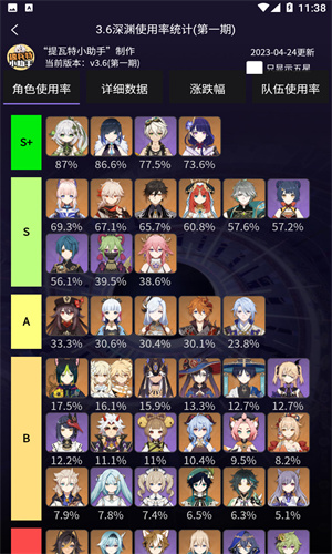 1、首先打开提瓦特小助手官方正版,在更多功能模块点击队伍使用率排行。