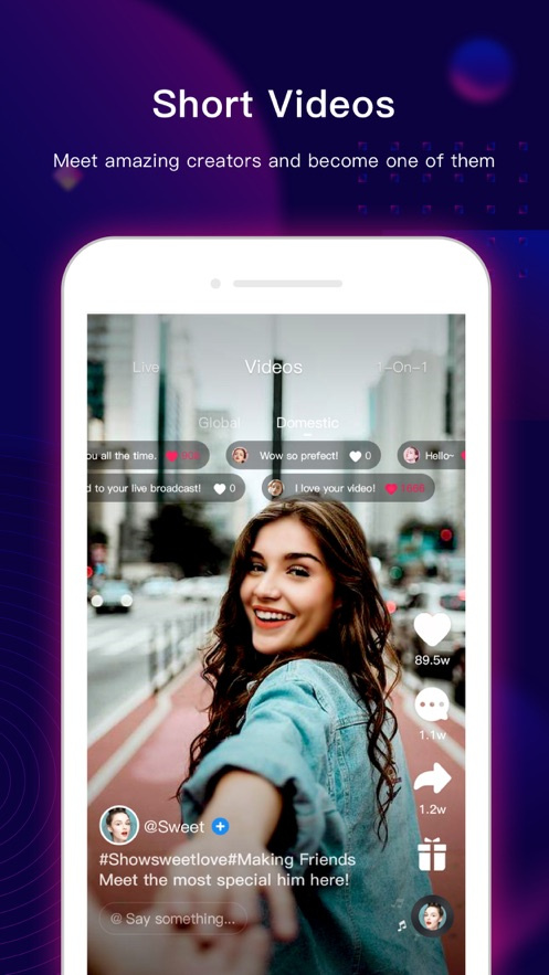 1、创意短视频,实时流和1V1随机视频聊天。一个APP可以满足您的所有需求。
