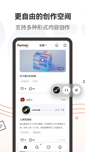 Partme是一款让所有用户都能找到拥有共同兴趣爱好伙伴的平台,还能让你在这里找到更多的灵感哦,各种类型的创作方式,视频、图片、文字等等都支持,大量原创的作品为你的生活带来更多趣味,无论你是想要分享自己的生活趣事,还是查看别人的作品都能满足你。平台上具有丰富的内容创作者,比如说UP主,Coser,虚拟偶像,你可以关注自己喜欢的博主。