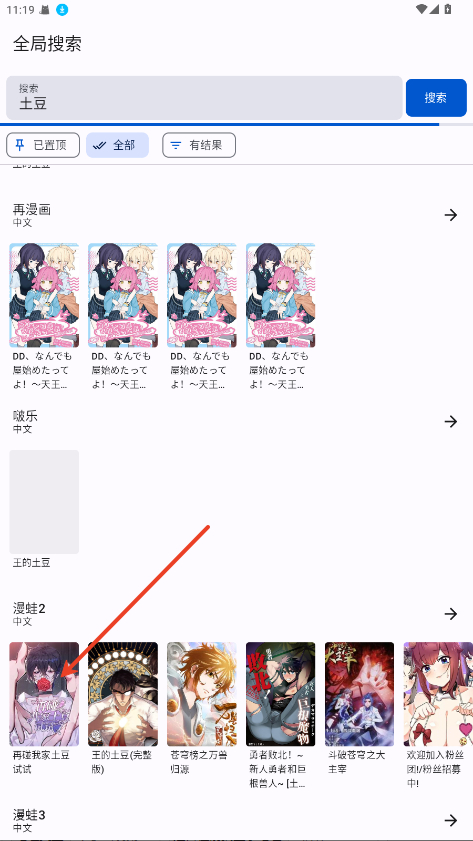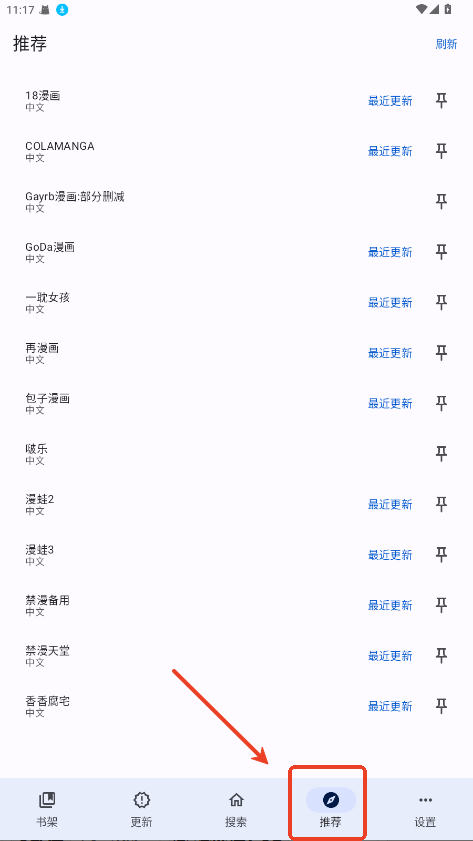也可以在推荐内通过进入各种漫画源导航内查看热门漫画。