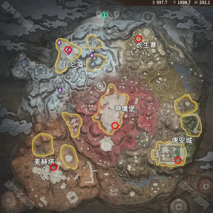 刷新点分别在:昆仑墟、长生寨、神鹰堡、唐安城、麦赫塔
